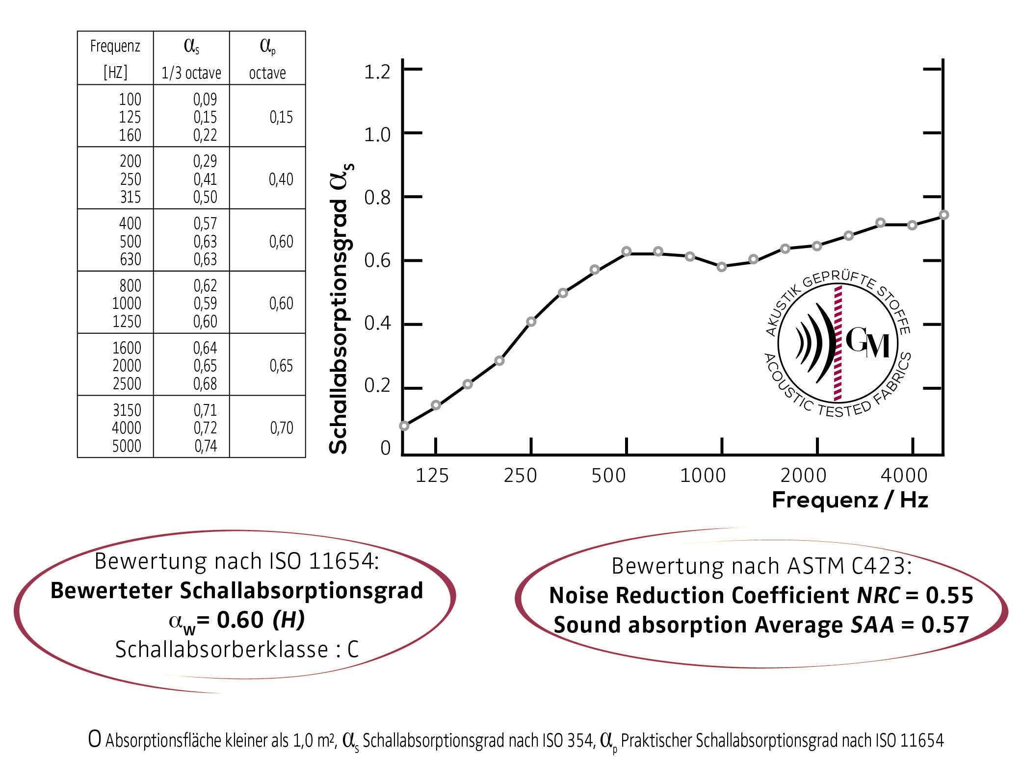 Übrigens: Wir testen unsere Akustikstoffe mit einem realistischen Abstand von 100 mm zur Wand.